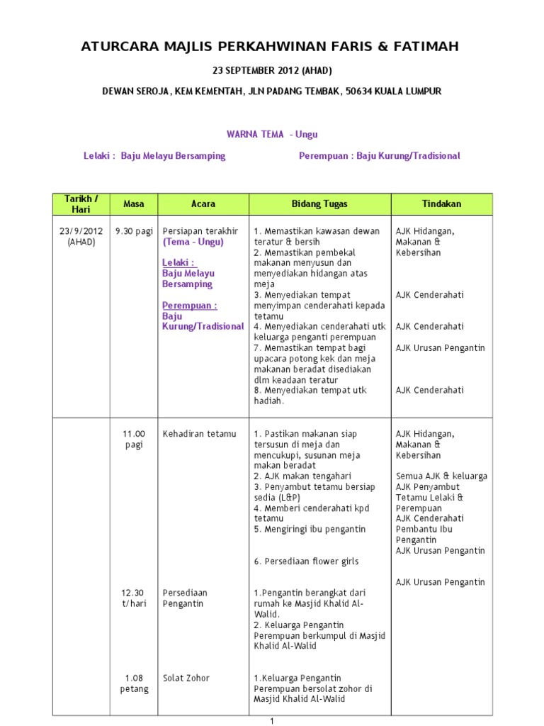 Aturcara Majlis Perkahwinan Fariz Fatimah Pdf