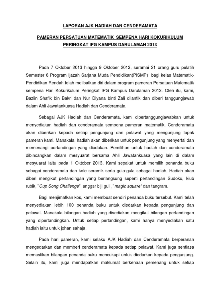 Laporan Ajk Hadiah Dan Cenderamata Pdf