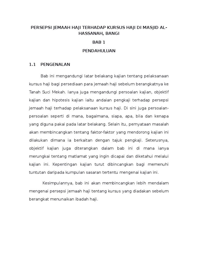 Persepsi Jemaah Haji Terhadap Kursus Haji Di Masjid Al Hasanah Bangi Terbaru Complete Pdf