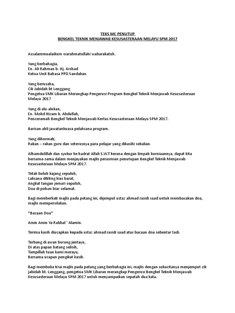 Ucapan alu-aluan MC 1. Bagi menghormati majlis hadirin diingatkan untuk berada. Skrip MC Acara 900925 1.